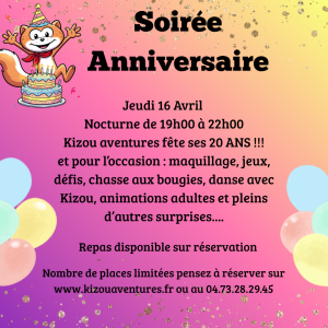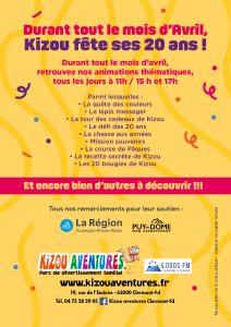 Kizou Aventures fête ses 20 ans et pour l’occasion nous vous avons prévue de nombreuses surprises :